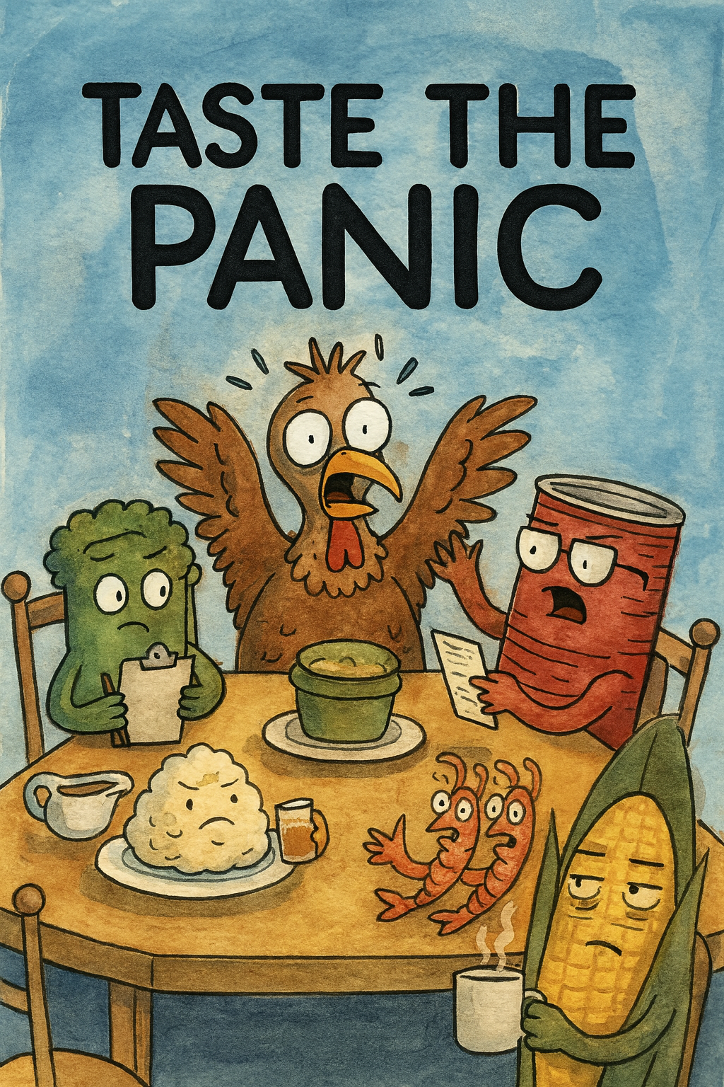 The squeaky sound of “weeeeeeee” is heard as the shrimps meet their gleeful demise. The mashed potatoes and gravy are jealous of the shrimps getting to depart this chaotic landmine.